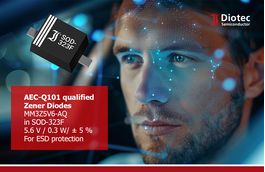 The MM3Z5V6-AQ Zener diode from Diotec Semiconductor stabilizes and regulates the voltage in the control unit for the electronic mirror adjustment. The Zener diode installed has 5.6 V ± 5% at 5 mA of test current, assembled in the SOD-323F package. The part is qualified following AEC-Q101.