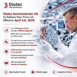 Diotec Semiconductor AG has announced the publication of its new price list, effective April 1, 2026, maintaining stable pricing across most of its product portfolio while introducing selective reductions in key product groups.